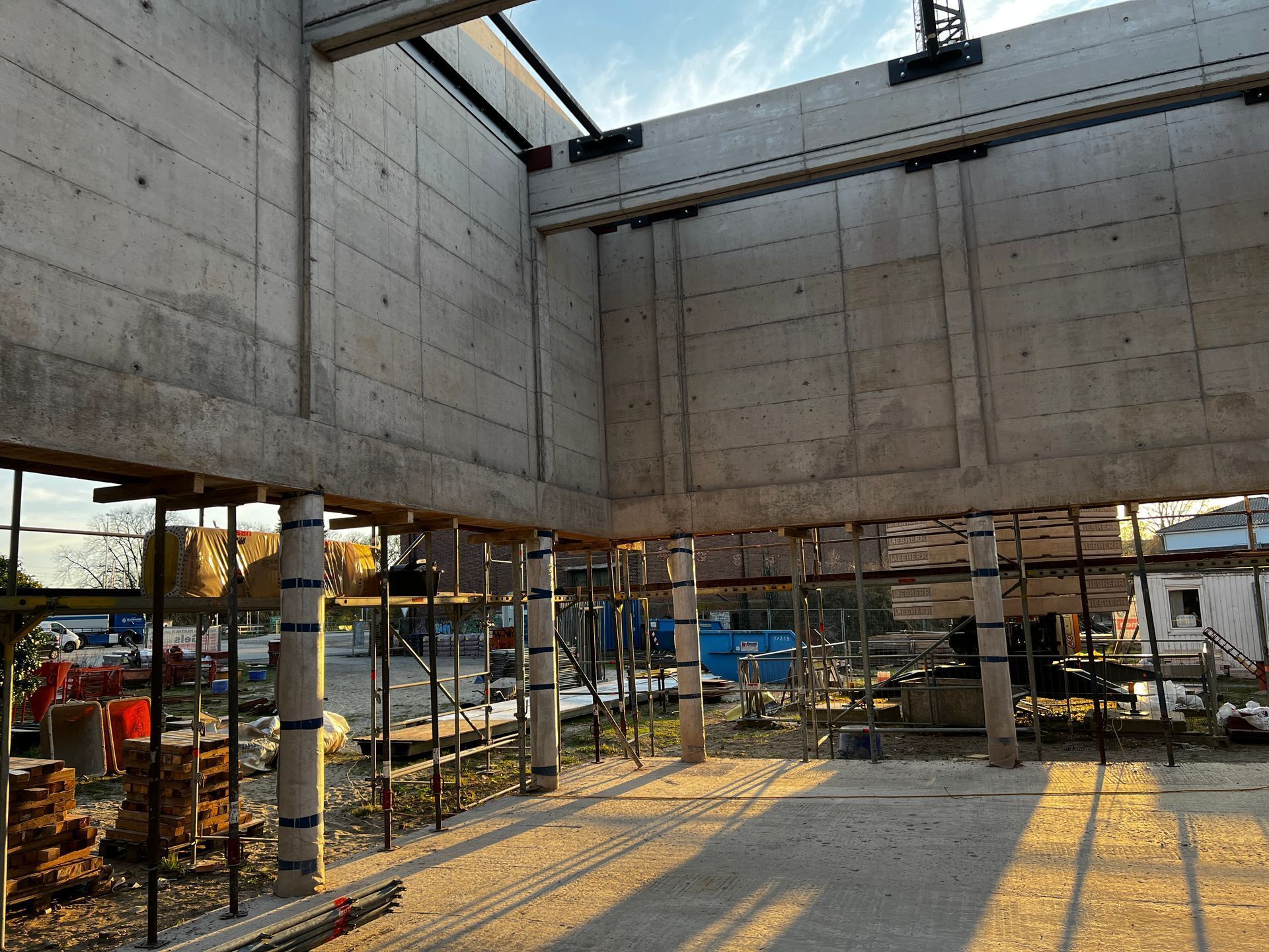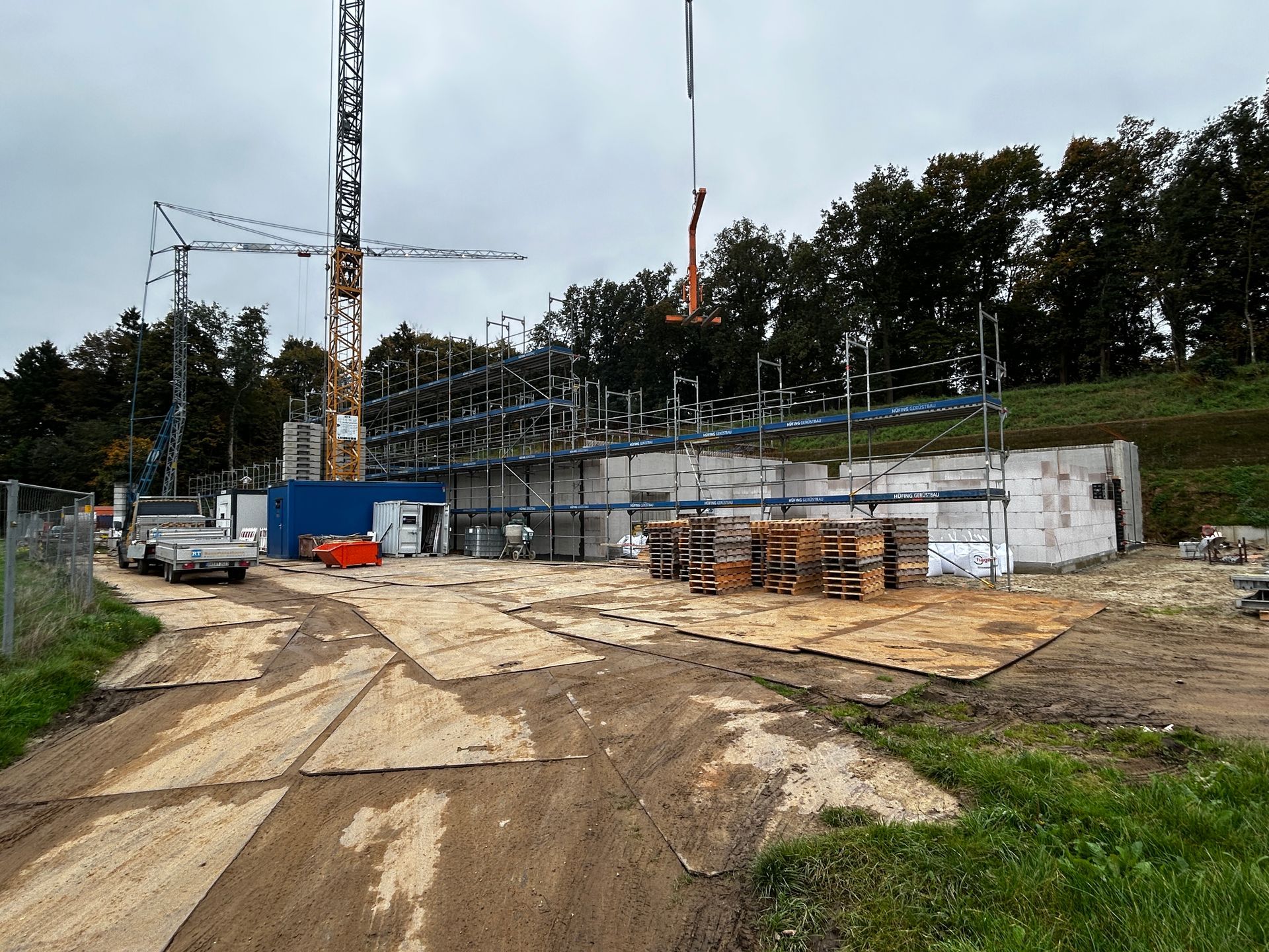 Inzwischen sind die Bestandsgebäude abgerissen und eine Hangsicherung/-befestigung durchgeführt. Der Baubeginn für die Rohbauarbeiten erfolgte Anfang Juni 2025.