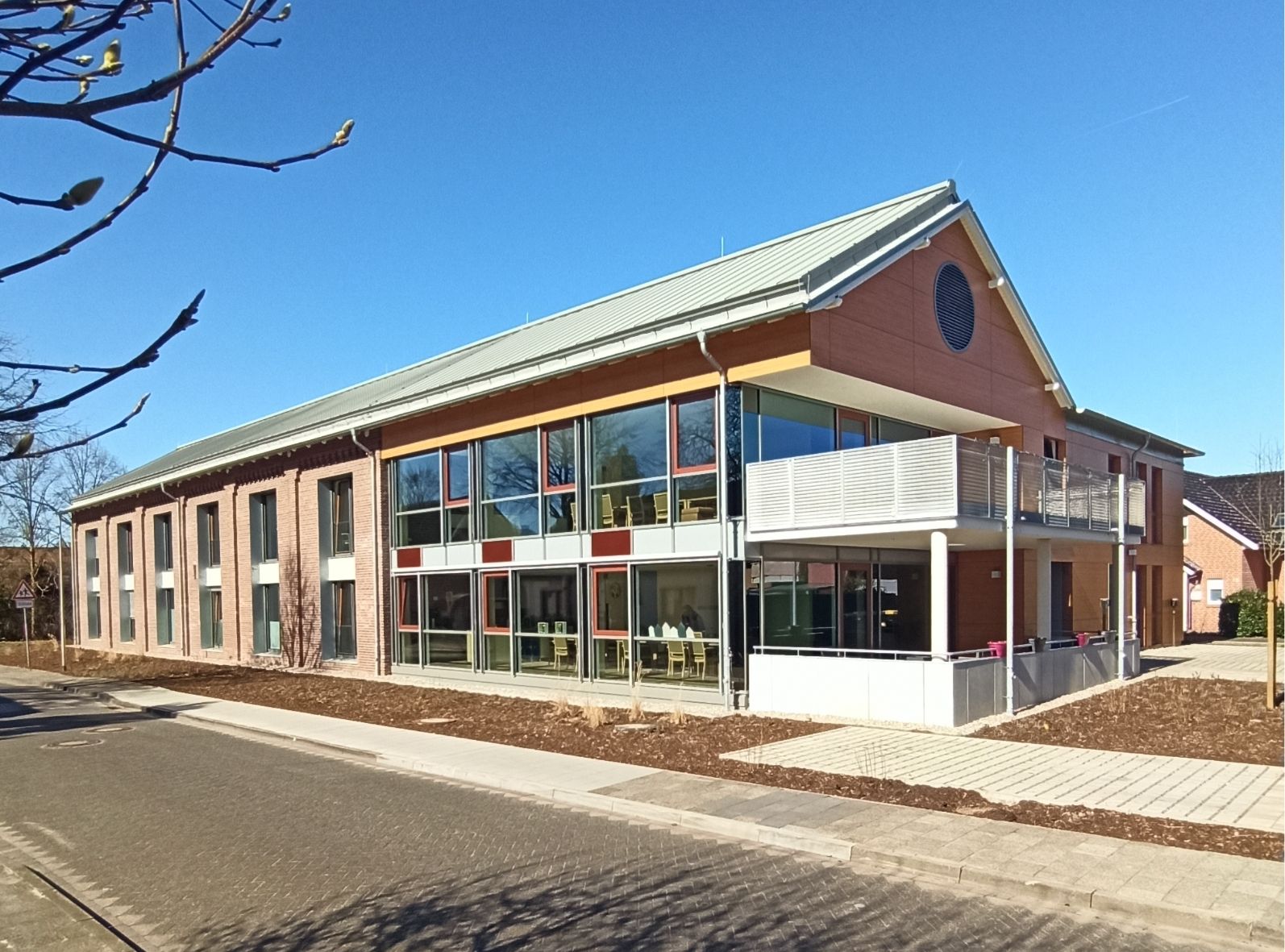 Das kompakte Haus in massiver 3 geschossiger Bauweise steht in direkter Nachbarschaft des Seniorenzentrums „Annaheim“ in Schüttorf am Rande des Bentheimer Waldes.